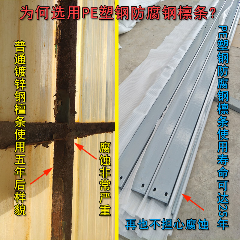 FRP采光瓦) 下面我們就來著重講一下,PE塑鋼防腐檁條的優點、性能、規格、和應用范圍。