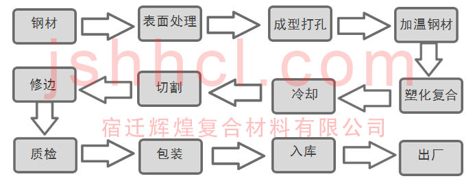 C 型鋼檁條的生產:根據建筑材料的規(guī)范,選用不同厚度、寬度的帶鋼,處理鋼板表面氧化層、鋼板表面壓花、鋼板成型、連續(xù)加溫、包塑、塑化、冷卻、切割等工藝完成。